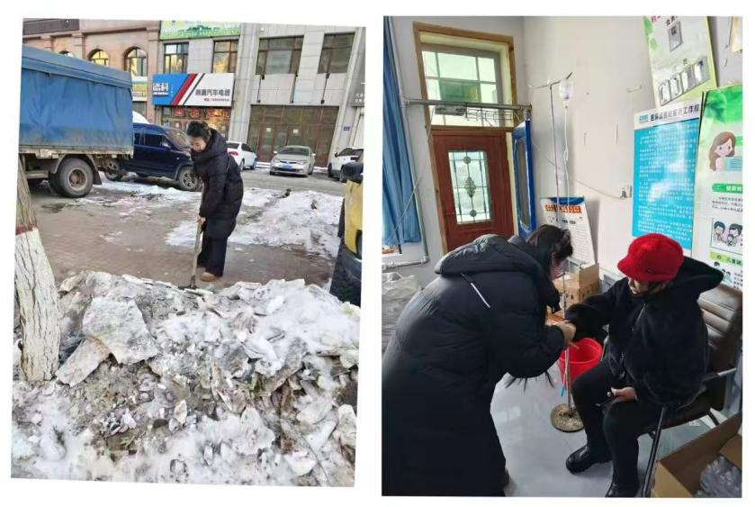 王冰涵手持铁锹在室外清理道路积雪,将结冰路面铲平,保障患者的出行安全;室内,她发挥专业特长,为社区老人拔针,宣传冬季健康护理知识,耐心解答日常用药疑问。从街头清雪到健康守护,她实际行动传递温暖。患者们纷纷表示,这些贴心的服务不仅解决了生活难题,更让大家在寒冷冬日感受到浓浓的温情。