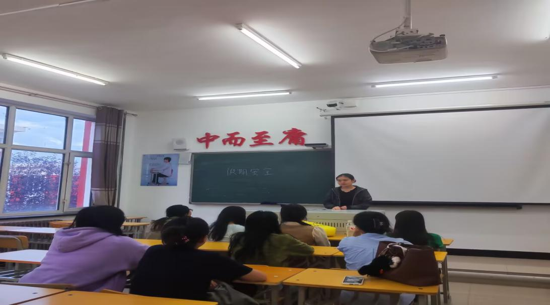 会上,辇士晶老师首先向同学们送上“双节”祝福。“中秋是团圆的节日,国庆是祖国的生日,无论大家留校还是返乡,安全都是送给家人和自己最好的礼物。”她结合近期校内外的真实案例,围绕“出行、防诈、消防、食品”四大模块,用“拉家常”的方式提醒同学们: