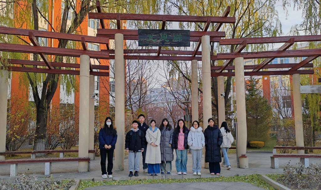 会后马鑫蕊老师通过实地走访模式,让学生在沉浸式体验中感悟校史文化,汲取成长力量。马鑫蕊老师首先带学生走进日新园,园内易湖、讌庸台、斅岛、悟谛广场、圣谛桥和梦蝶钢塑等景观相映。她解读:“‘日新’是学校健康人才培养‘每日精进’理念的体现”,并介绍梦蝶钢塑“破茧成蝶”寓意,铺垫医学成长之路。随后师生到怀德园,马老师以子曰“君子怀德,小人怀土;君子怀刑,小人怀惠”为引,结合学校倡导理念“成小事靠才能、成大事靠品德”,点明学校要培养怀德立业之人。
