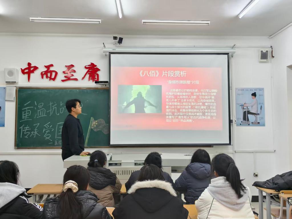 活动伊始,同学们有序就座,而后负责人进行以“重温抗战史,传承爱国魂”为主题的开场白,倡导同学们将红色基因融入医学专业学习与职业理想塑造中去,讲述结束后邀请每位同学先前自己准备好的PPT,讲述他们知道的革命红色故事,目的是为了传承历史记忆、培养爱国情怀和塑造民族精神,而非娱乐或历史灌输。电影中传递的勇敢、坚毅、奉献、不屈不挠等精神,为同学们提供了品德教育的范本。