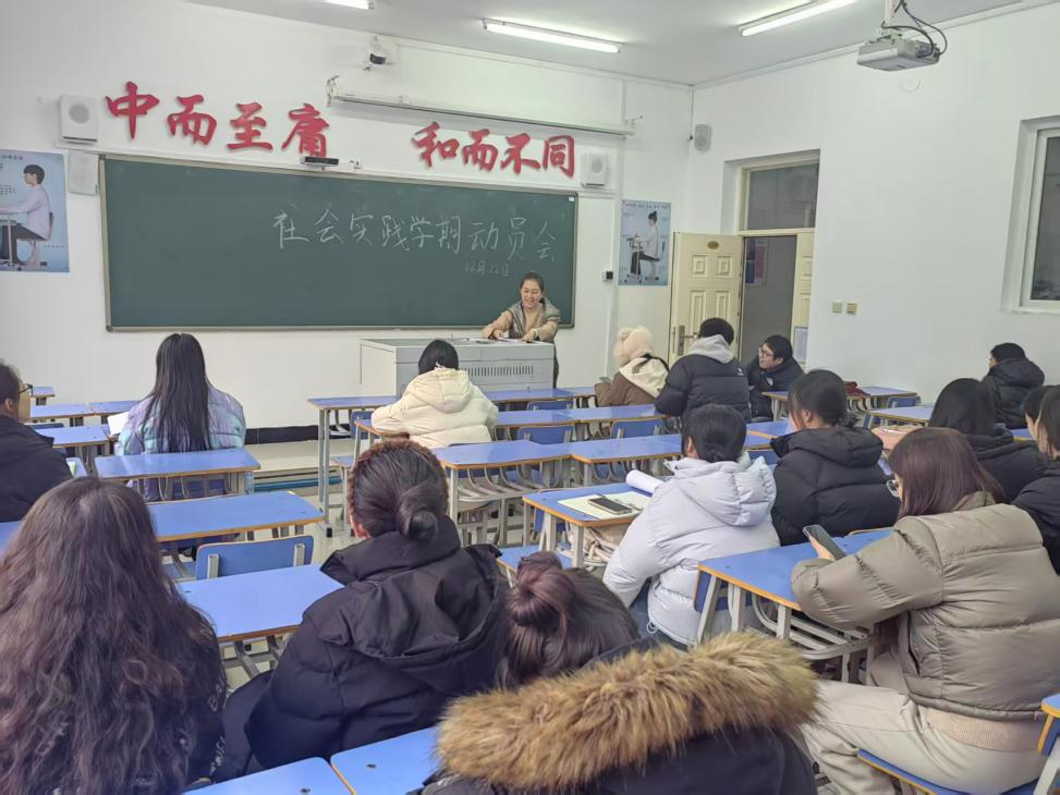 2025年12月22日14时,医学院护理学专业生涯导师孙晓雪在1教1209召开社会实践学期动员会,本次会议由孙晓雪老师主持,2023-2025级全体生涯学生参会。