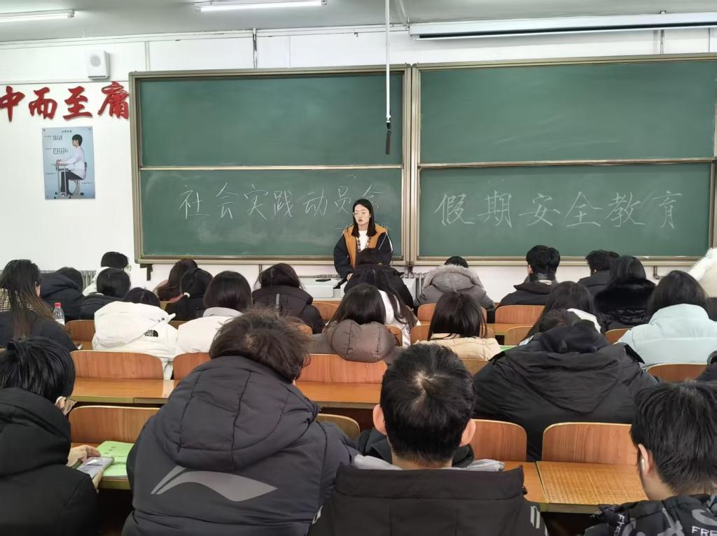 于晶老师首先明确了本年度社会实践学期在任务内容与考核方式上的调整与要求,她提醒学生认真完成各项实践内容。于晶老师重点强调了考试纪律,要求全体同学严格遵守考场规定,考试时须备齐准考证与身份证,杜绝各类违规行为。