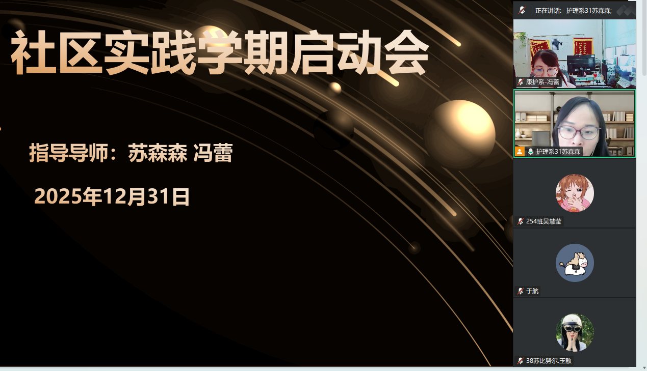 为统筹推进新一批学生的临床教学工作,明确实习期间的各项规章制度与安全准则,确保实习过程的顺利与高效,护理学(专升本)专业负责人苏森森、专业助理冯蕾老师12月31日通过腾讯会议形式组织召开了实习前动员会。全体学生参加了会议。会议主要围绕实习纪律、安全规范、实习要求、分工协作及考勤制度五大核心议题展开。