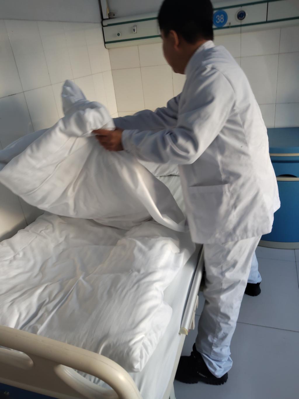 上午,在带教护士的安排下,我来到内科病房。带教老师首先向我详细说明了病房打扫的具体要求:清扫地面要从里向外,避免灰尘扩散;清洁台面要用专用抹布,做到一床一巾;更换床单被套时要注意动作轻缓,减少扬尘,并确保床铺平整、无皱褶。这些细致的规定让我立刻联想到学校实训课上的严格要求——正是在校期间一遍遍的练习,让我此刻能迅速理解并上手操作。我拿起扫帚和拖把,按照指导从病房最里侧开始清扫。遇到床底、柜脚等容易积灰的角落,我也仔细清理干净。接着,我学习并练习了规范的铺床流程:撤下旧床单、铺平床褥、套好干净的被套和枕套,最后将床单四角包紧压实。整个过程虽然基础,却需要耐心与细致。