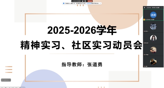 2026年1月4日19时,指导教师张道勇组织召开精神护理实践及社区护理实践动员会。会议由张道勇主持,全体参与实习的学生参加会议。