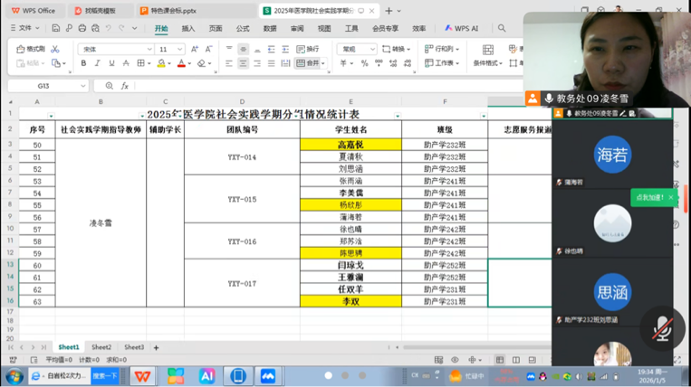 2026年1月5日晚7点30分,指导教师凌冬雪老师在腾讯会议开展了2025-2026学年度社会实践学期动员会,四组同学参加了此次会议,会议正式开始前凌冬雪老师统计了学生们的归家情况并强调本次社会实践学期的重要性。社会实践学期主要是通过丰富多彩的实践活动,提升同学们的德智体美劳以及社会责任感,同学们要秉持“我们面前无困难,困难面前有我们”的亮剑精神来迎接此次社会实践学期。