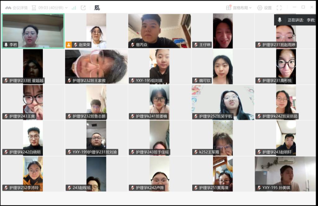 1月9日20:30,医学院李岩老师主持召开社会实践学期第一周周总结会议,30名参与社会实践的学生全员参会。