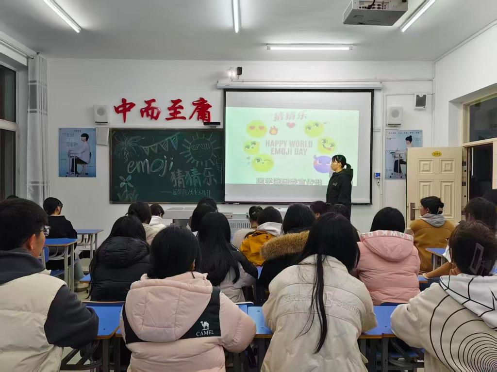 为丰富医学及护理专业学子的课余生活,打破专业学习的严谨沉闷感,医学院团委于11月6日在一号教学区1206教室组织开展“emoji猜猜乐”主题活动。本次活动由宣传部部长梁红丽组织,医学院部分同学参加。