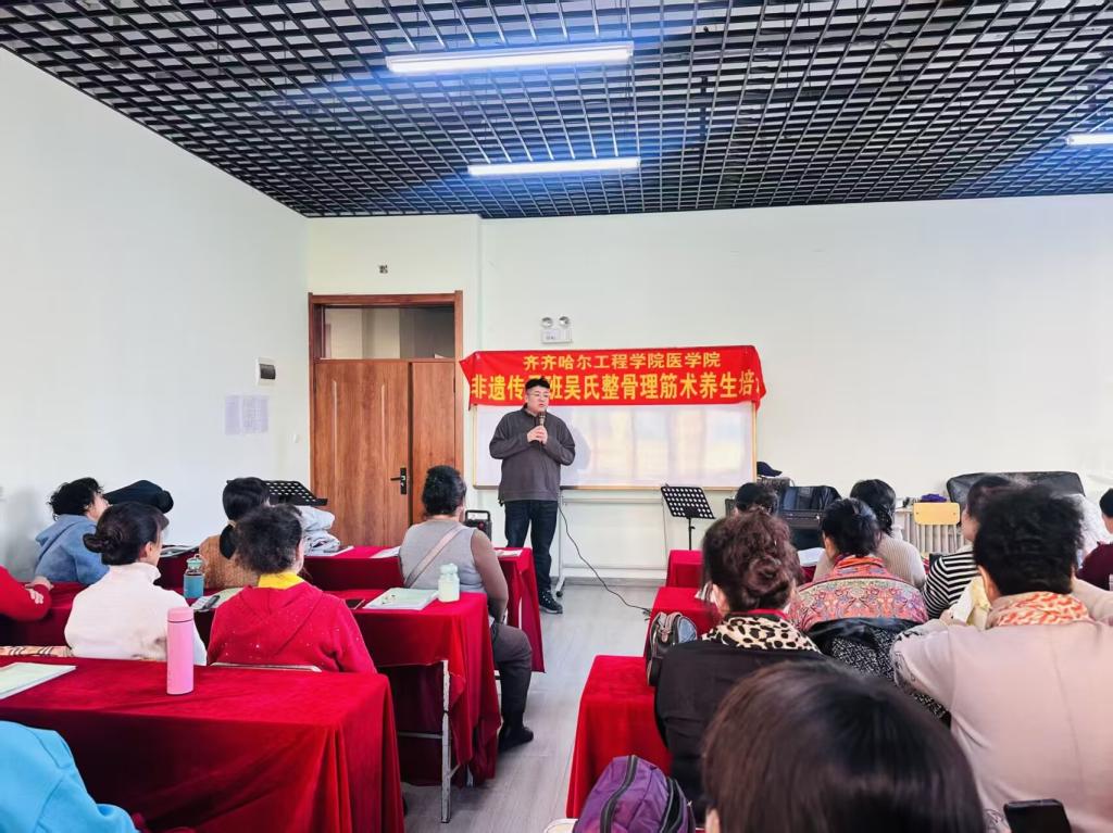 为普及科学养生知识,提升社区居民健康管理能力,2025年12月2日至12月5日,齐齐哈尔工程学院医学院组织专业团队赴新合社区开展养生培训活动。本次活动由医学院吴迪老师担任主讲人,围绕家庭实用养生方法展开系统讲解,累计服务社区居民278人次,获得了居民们的广泛好评。