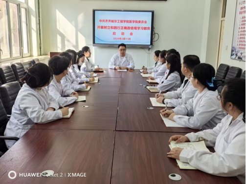 为深入学习贯彻党新时代中国特色社会主义思想,引导全院党员干部牢固树立和践行正确政绩观,齐齐哈尔工程学院医学院委员会召开树立和践行正确政绩学习教育启动会,对相关工作进行全面部署。会议在1#1204开展,由医学院党委副书记姜宏伟主持,学院党委委员、各支部书记和委员参加此次会议。