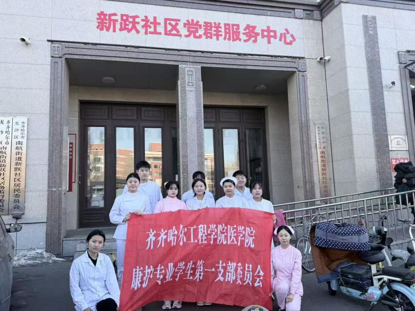为进一步提升社区居民健康素养,普及科学实用的健康知识,将专业服务送到居民身边,2026年3月15日,齐齐哈尔工程学院康护专业学生第一党支部走进新跃社区开展健康宣教主题活动,以实际行动践行青年党员的责任与担当。