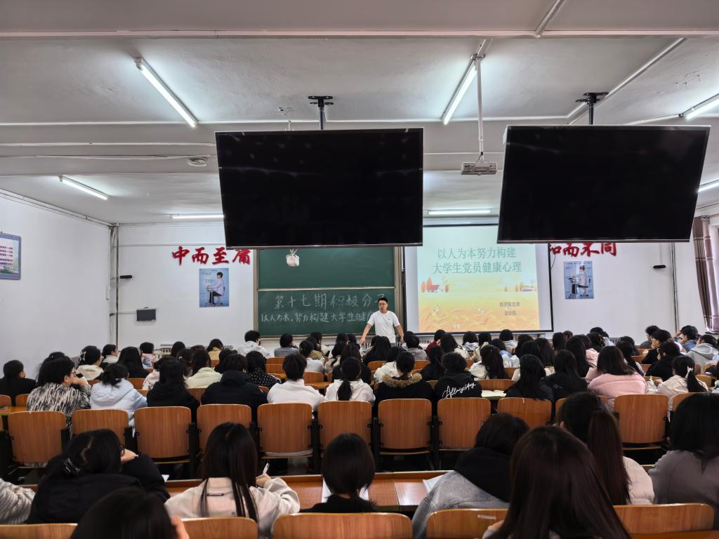 姜宏伟同志以《以人为本,努力构建大学生健康心理》为题,针对青年群体常见的心理压力、情绪调节等问题,提供科学的疏导方法与实用技巧,助力积极分子以积极健康的心态投入学习生活。