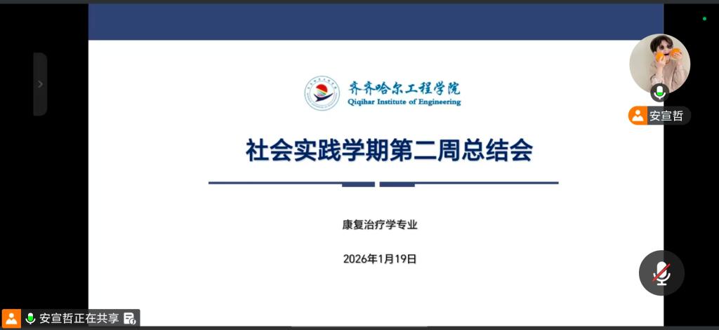 为切实保障2025级康复治疗学专业社会实践质量,1月19日,齐齐哈尔工程学院康复治疗学专业线上召开社会实践第二周总结会,全体25级学生参会。