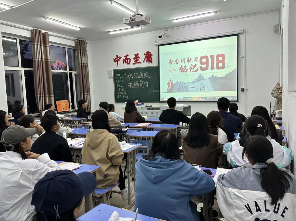 历史长河,能留住几寸光阴?能铭记几个瞬间?“九一八”便是其一,深刻在中华民族的时间柱上,永远不会磨掉。为纪念 “九一八”事变,护理学234班于2023年9月18日在1#1203开展 “勿忘国耻 砥砺前行,纪念 “九一八”事变”事变92周年主题团活。本次团活由团支书李佳主持召开,护理学234班全体成员参加。