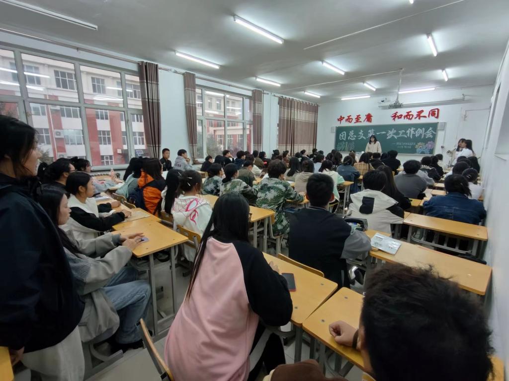 会议伊始,青工部部长朱龙辉对各位新到来的同学们表示欢迎并向他们介绍了新一届的团总支和各位团干部,与此同时各个部门部长上台进行讲话并对各自部门进行工作讲解与工作布置。随后会议中,青工部部长朱龙辉给各位团支书分配任务,并强调青年大学习的重要性,要求团委发挥作用要求同学们参与率达到百分百,希望大家积极主动配合团支部工作。组织部部长李函豫希望同学们认真去做每一件事,使工作达到高标准高效率。宣传部部长陈书晴强调了各班宣传委员需要提高板报质量和报道质量,避免马虎。纪检部部长寇佳琪讲到晚自习时间严格遵守学校的规章制度,不要出现逃课旷课等现象。