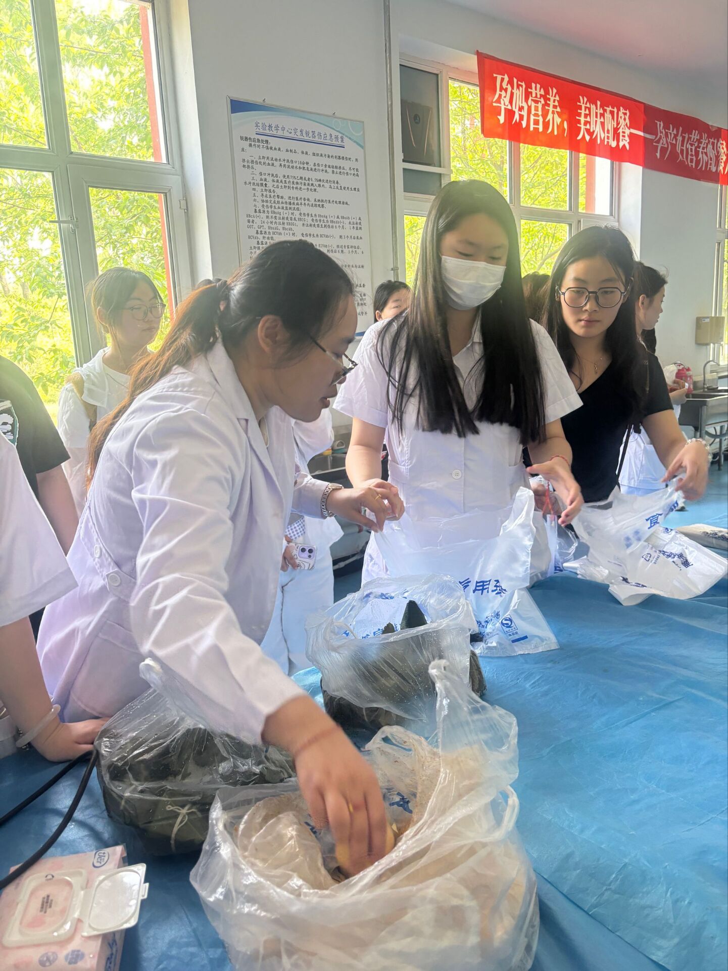 随后,进入了备受期待的动手实践环节。在导师的耐心指导下,同学们纷纷拿起翠绿的粽叶,折叶、填米、放馅、压实、缠线……现场粽叶舞动,欢声笑语不断。从生疏到熟练,一个个形状各异的粽子在同学们手中逐渐成型,整个过程不仅锻炼了大家的动手能力和协作精神,更让同学们深切体会到劳动的乐趣与价值。