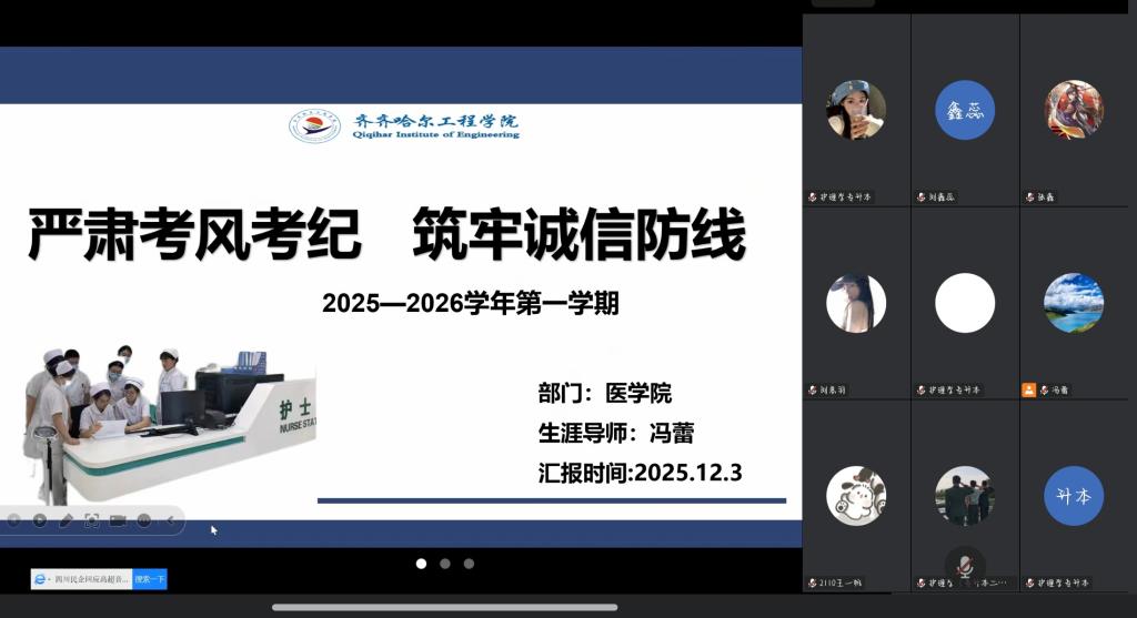为了营造公平、公正、诚信的考试环境,确保期末考试的顺利进行,12月3日,冯蕾老师组织召开了期末考试考风考纪线上专项会议,冯蕾老师全体生涯学生25人共同参与。