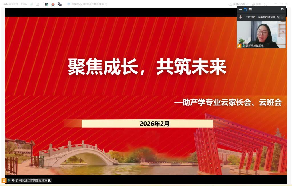 为加强家校协同育人,帮助学生及家长明晰学业规划与职业发展路径,2月27日,助产学专业组织召开云家长会暨云班会。会议由辅导员江丽娜老师主持,专业长马静老师、辅导员邱瀚宁、安宣哲老师共同参加。
