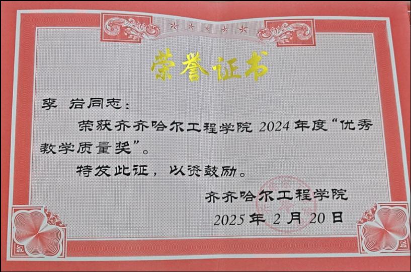 从课程体系构建到教学方法创新,从思政元素融入到实践能力培养,李岩老师以精益求精的教学态度,为学生搭建成长阶梯,用实际行动践行着“学高为师,身正为范”的师德准则。