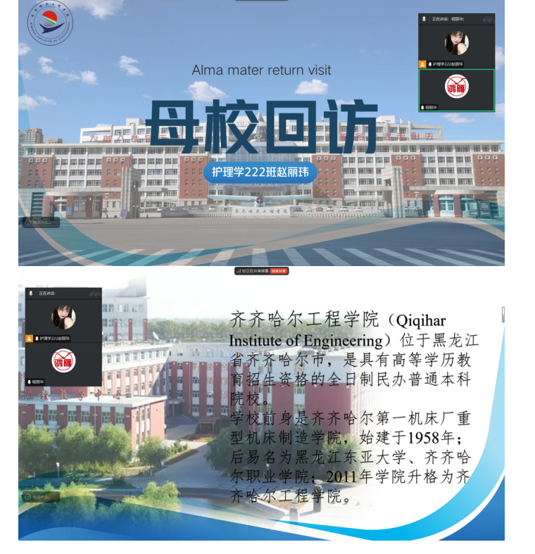 回想三年前的今天,一切的一切都是那样的真真切切。使我仿佛又置身于那段充实紧张的高中时光。程老师和我交谈了学校的现状和其他老师们的近况。我也与老师谈起我的大学——齐齐哈尔工程学院。在大学之中遇到了很多志同道合的朋友,我们一起不断学习专业知识,提高专业技能。学习护理学也是一个前所未有的新奇体验,程老师还鼓励我在学习之中一定不要停下前进的脚步,要勇攀高峰。