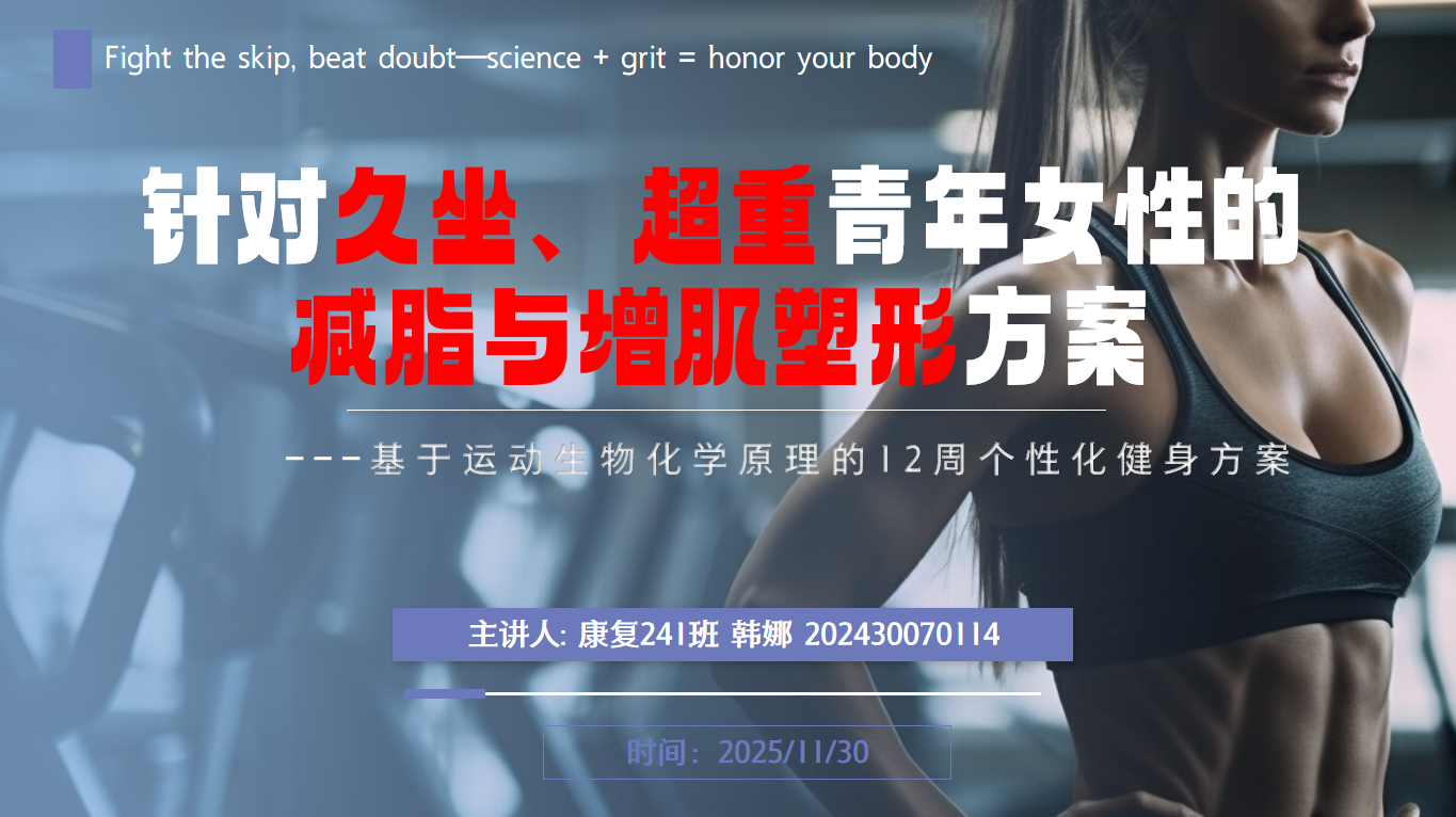 竞赛以《运动生物化学》课程为核心,围绕运动代谢、能量供应、疲劳恢复等生化机制,秉持“理论赋能实践、实践反哺认知”理念。考虑到学生实操需求,学院提前开放运动康复实训室,助力学生夯实理论、打磨实操技能,让不同基础的学生都能找到提升路径,形成勤学苦练的研学氛围。竞赛分初赛与决赛两阶段。11月22日,初赛通过学习通在线闭卷考查基础理论,成绩前50%的学生晋级;11月30日决赛中,选手需针对久坐超重青年女性等三类人群,提交12周个性化健身方案PPT,既锻炼学生精准对接人群需求的能力,也提升方案设计与可视化呈现技巧。最后,评委依据四大维度综合评分,最终按参赛人数30%评选奖项,一、二、三等奖比例为1:2:3,获奖学生获对应奖金及证书。