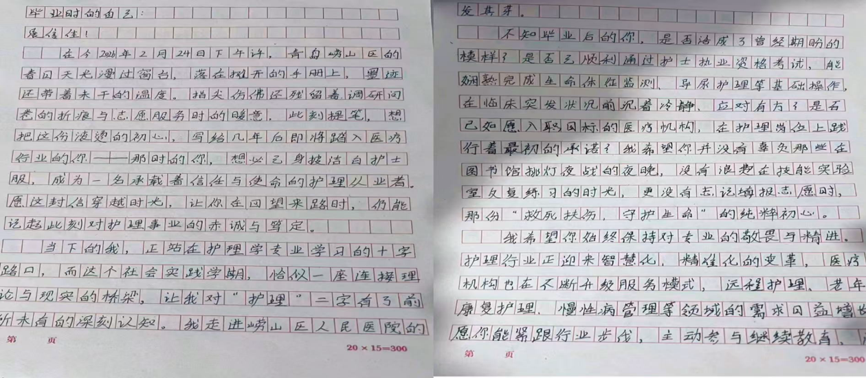 在社会实践的任务里,护理学—133组完成社会实践任务,护理学专业的高双、李萌,李美静、张晓静四位同学,”致自己未来的一封信”想把心里话写给这段以笔为媒、以影为证的自己。