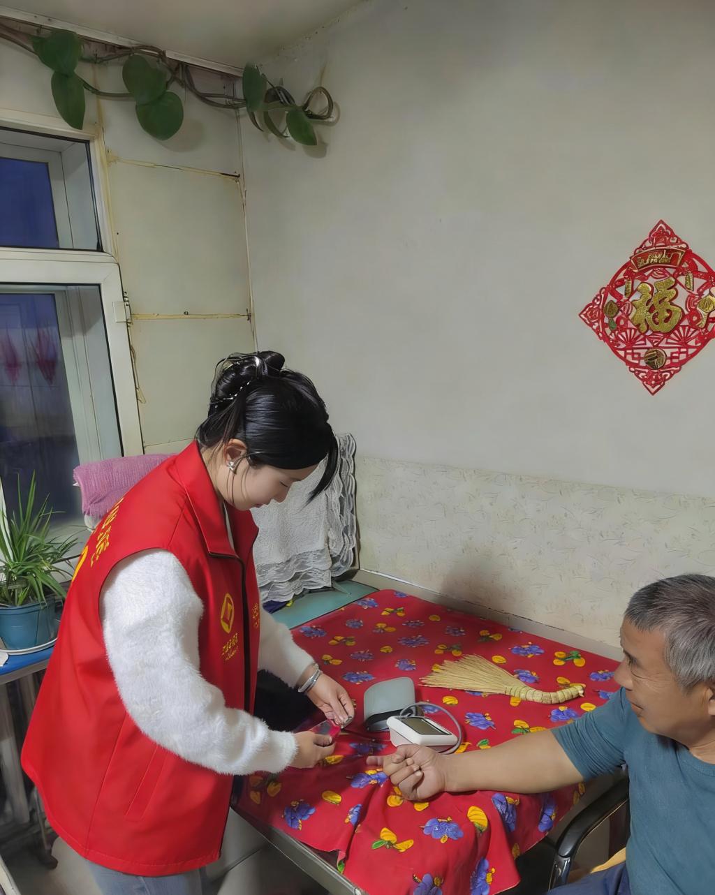 张勇鑫深入新化社区独居老人家中,上门完成15户健康监测。她耐心为老人讲解控盐控糖饮食要点,还协助社区整理老年健康台账。她表示:“上门服务让我明白,护理不仅是技术,更是陪伴与共情,一句叮嘱或许就能让老人多一份安心。”
