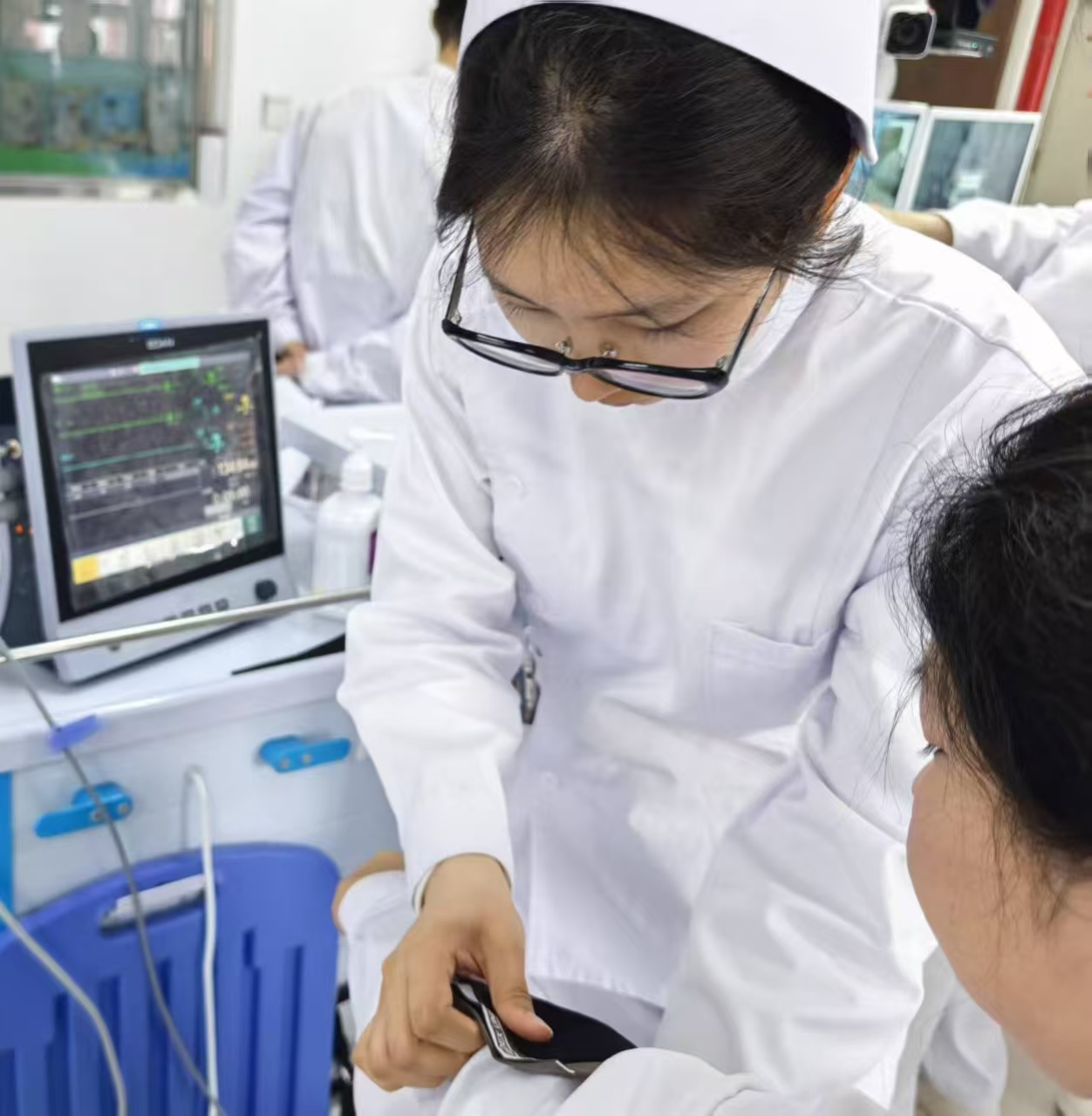 精神科护理工作的特殊性,决定了“观察”是护理人员最重要的核心能力之一。在郑州市第九人民医院精神科的病房里,病情观察不仅仅是常规工作的流程,更是一道保障患者安全的防线。护理人员及实习生们将生命体征监测作为观察的基础,确保每一位患者生理机能的平稳。然而,精神科的观察远不止于此。团队重点强化了对患者精神症状的动态捕捉: