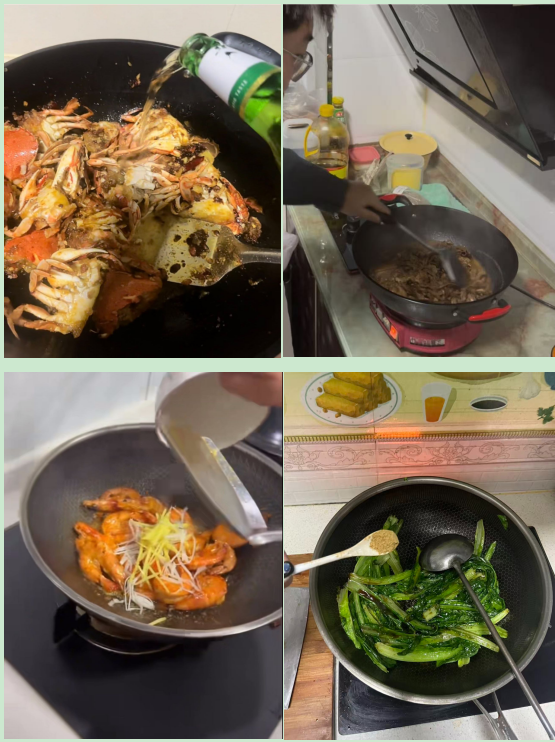 YXY-159组的四位同学虽身处各自家中,却共同完成了一场别开生面的“烟火劳动课”。不同的厨房,同样的热气氤氲与烟火气息,将分散各地的他们紧密相连。