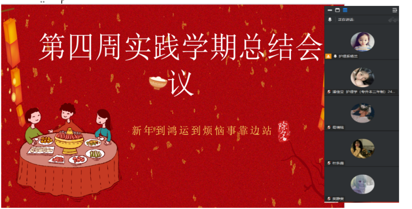 2月2日,护理学(专升本)专业实践学期第四周总结会议由杨兰老师主持召开,参会人员包括24级社会与精神实践学期及25级社区实践学期学生。会议重点对实践学期作业进度、报道撰写及注意事项进行了详细说明。