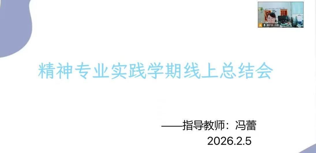 为全面梳理精神专业实践学习成果,总结实践经验、反思不足、明确后续学习方向,2026年2月5日,精神专业实践学期线上总结会顺利召开。本次会议由指导教师冯蕾主持,全体参与实践的同学共同参会,以线上会议形式开展总结交流与学习反馈。