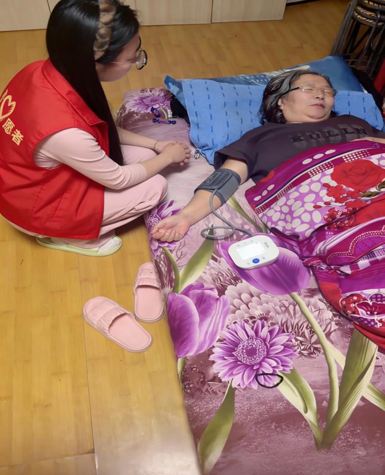 推开房门时,李奶奶正躺在床上休息。看到我穿着红马甲进来,她立刻露出了笑容,招呼我坐下。我先陪她聊了几句家常,听她讲年轻时在工厂的故事,气氛慢慢放松下来。我拿出血压计,把袖带轻轻绑在她的上臂。“奶奶,您别紧张,放轻松就好。”我一边轻声说着,一边按下测量键。看着仪器上跳动的数字,我想起课堂上老师说过,老人情绪波动会影响血压读数,所以我特意放慢语速,跟她聊着养花的趣事。