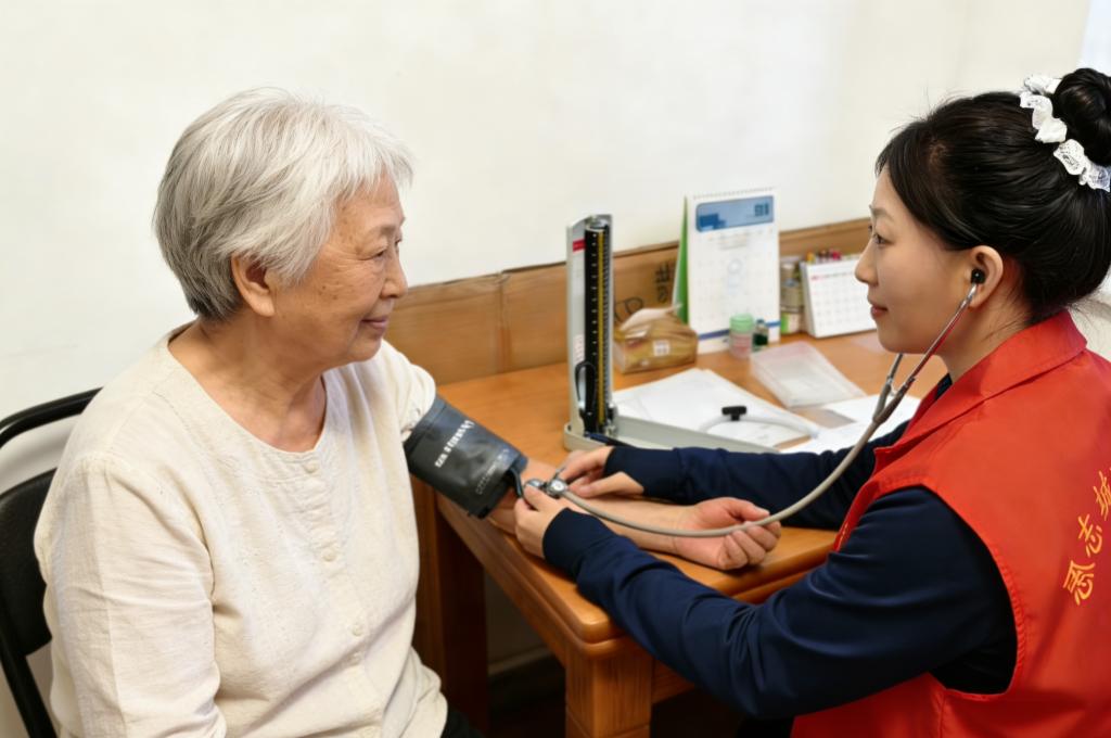 其次,她以上门测压为切入点,向老人询问健康问题,记录血压变化并定期提醒复查,还现场讲解高血压防护知识,为老人答疑解惑,送上实用的健康建议。