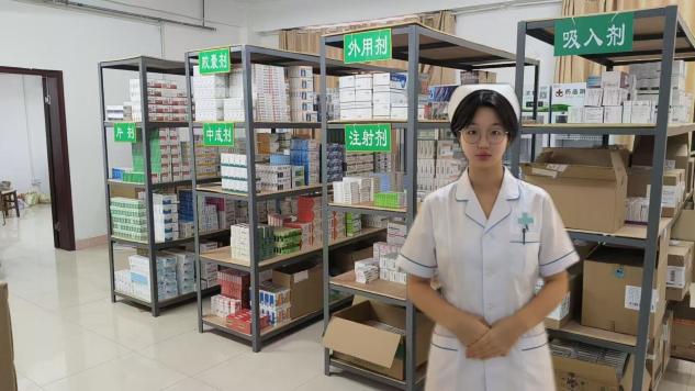 护理学252班高晓宇同学在药房内,面对整齐排列的药架,她恪尽职守,协助进行药品的整理与归类。她用专业知识确保了药品管理的井井有条,彰显了青年志愿者的专业与细心。