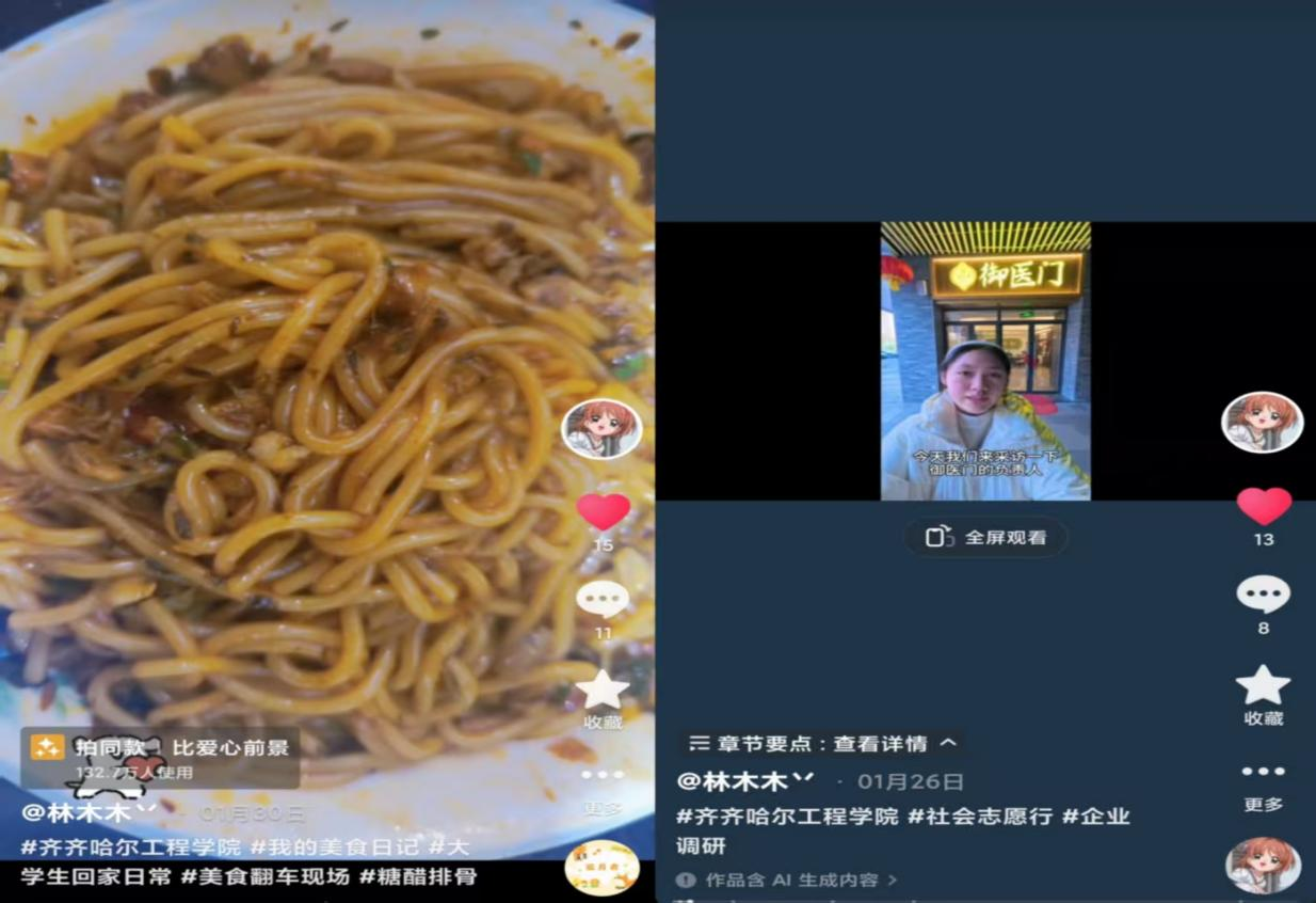 在这个寒假,齐齐哈尔工程学院医学院护理学专业的许殿泽、卢家慧、林子怡三位同学,积极响应学校“青春FUN肆拍”寒假实践活动的号召,各自在家乡开启了一段充实而多彩的假期旅程。他们拿起镜头,定格下美食日记、社会志愿行与独特假期生活的生动瞬间,用行动诠释着当代护理学子的青春担当。