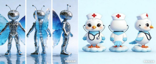 晏丛萍同学的校园吉祥物和专业吉祥物分别以《设计中的设计》和《护士的故事》为原型。学校吉祥物以“梦蝶钢塑”为核心,紧扣梦蝶钢塑核心寓意,具象化“化蛹为蝶、好梦成真”的校园成长愿景,将其具象化为承载校园奋进文化的生动载体;专业吉祥物则深度融合白鸽的象征意义与护士职业特质,打造出兼具萌趣与专业感的视觉效果。