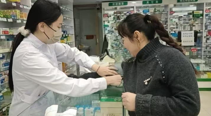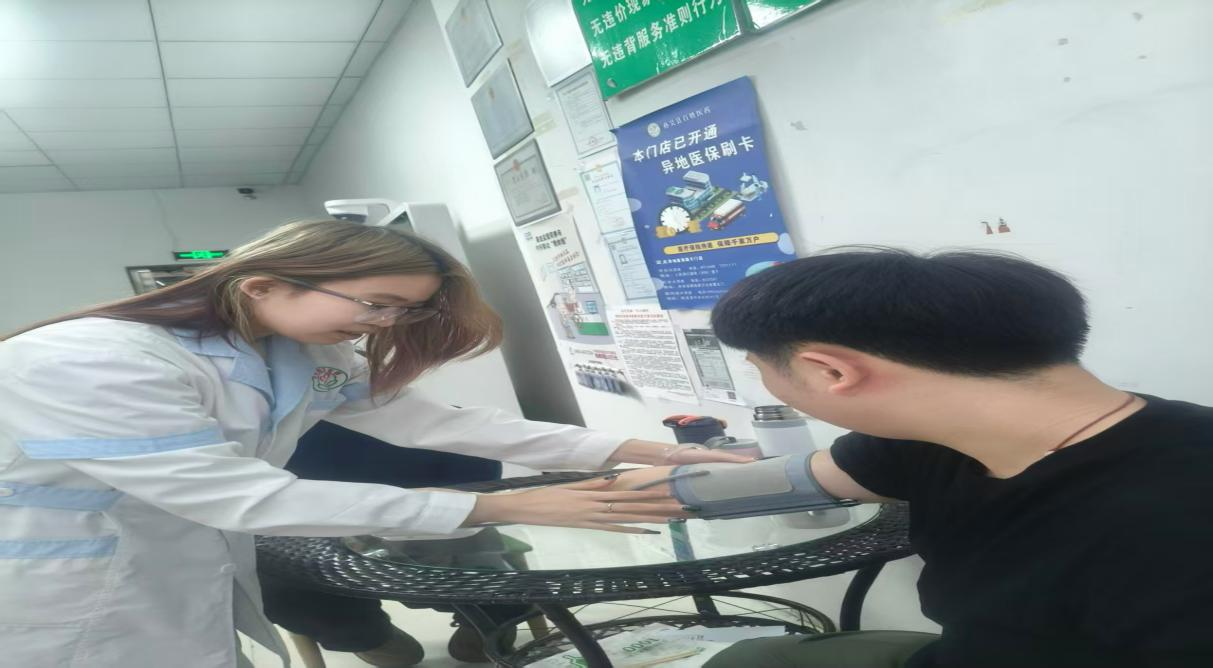 陈艺萌同学在孙吴县百姓医药连锁有限责任公司新特药大药房,用专业能力践行医学生的责任与初心。她为前来咨询的群众测量血压,专业细致的操作、温和耐心的态度,让每一位群众都倍感安心,也让“健康所系、性命相托”的誓言在实践中落地生根。