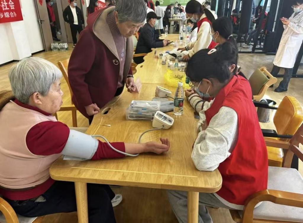 关世昕同学主动加入呼兰红十字医院老年健康关爱志愿队伍,深入乡村为老年村民免费测量血压。她全程耐心细致,一边精准完成检测工作,一边用通俗易懂的语言,为老人们讲解高血压日常防护、冬季疾病预防等知识,用实际行动为老人送去健康关怀。