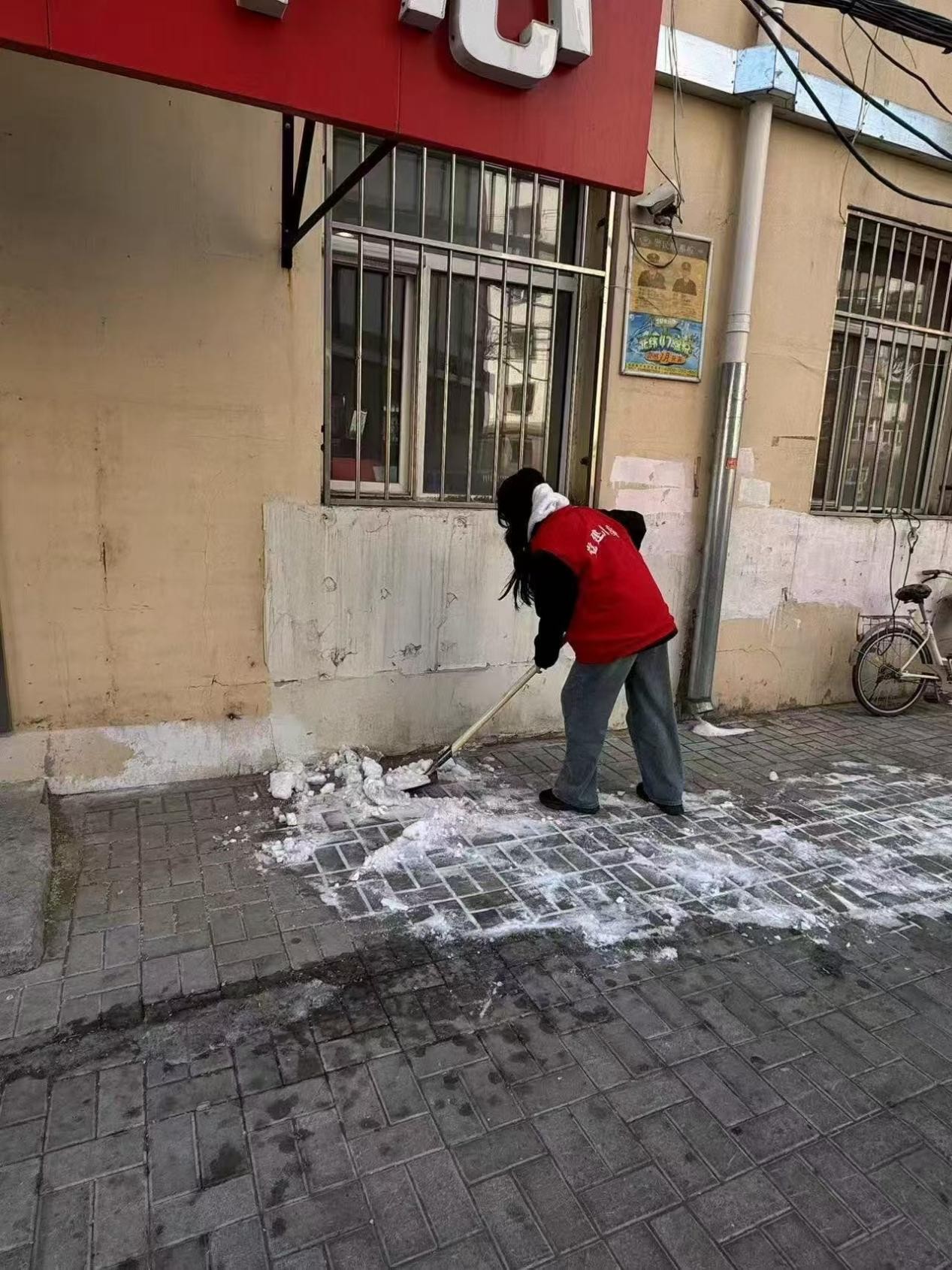 “老人腿脚不便,路面稍有湿滑就可能跌倒,清雪除冰就是守护他们的出行安全。”杨希莹说。她的身影在寒风中格外坚定,用汗水换来了老人们安心的脚步,也用行动诠释了“安全守护”的责任担当。