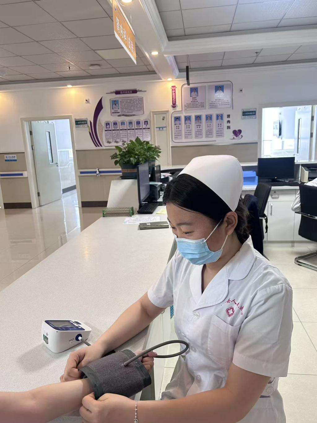 张佳鑫在社区志愿服务中,张佳鑫为居民提供血压测量、健康咨询等服务。她耐心细致、态度温和,用专业知识为大家答疑解惑,把温暖与关怀送到居民身边。
