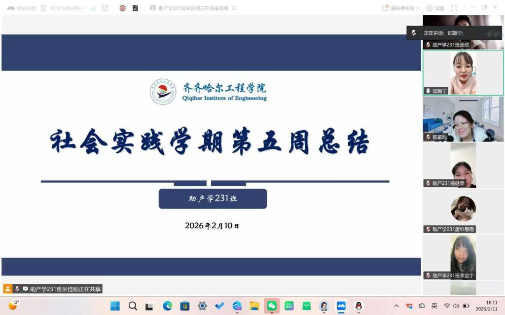 2月9日,助产学231班于腾讯会议开展社会实践学期第五周周总结会议。本次会议由辅导员邱瀚宁主持,助产学231班全体同学参加。