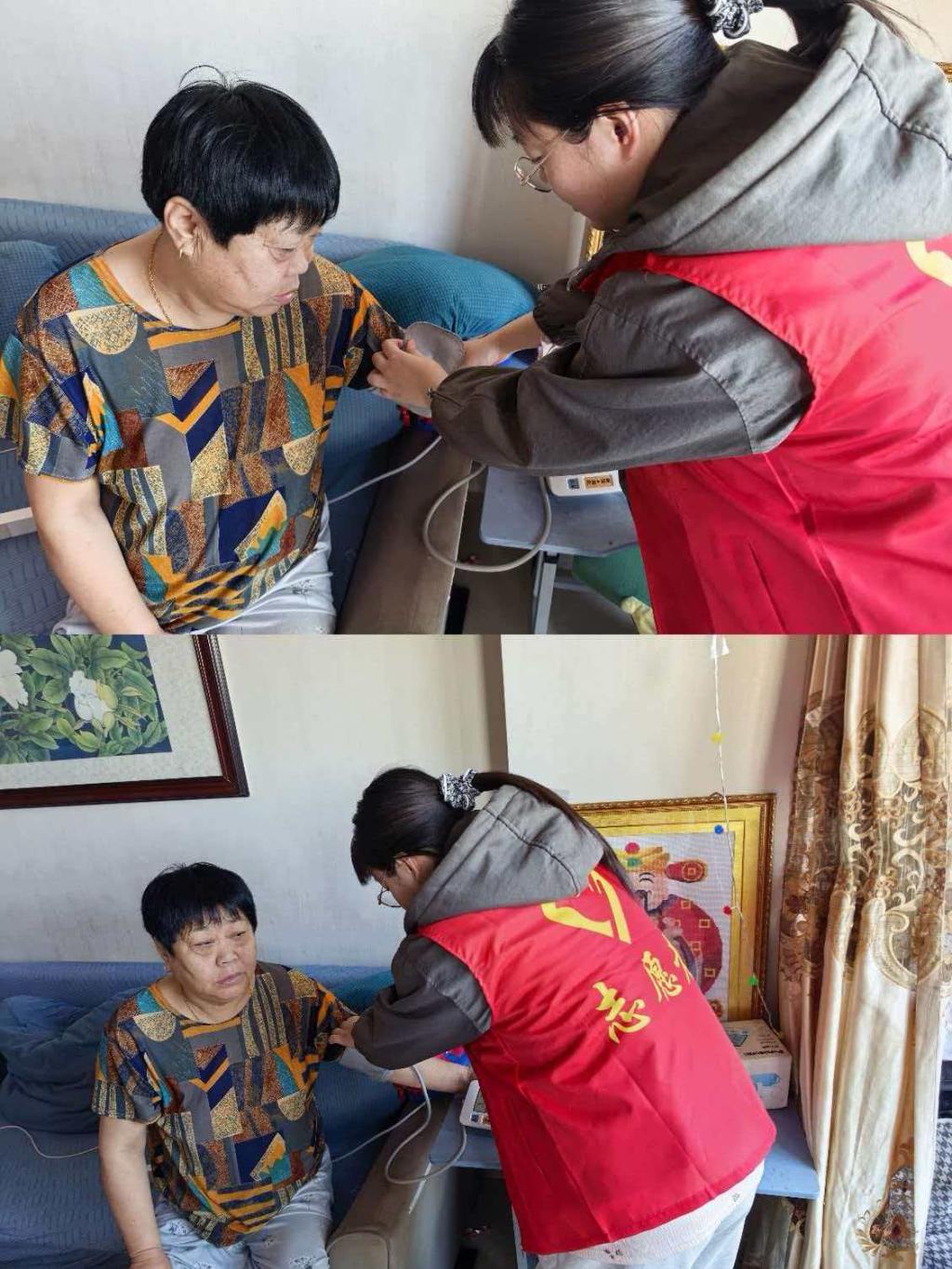 除了基础检测,同学们还结合专业知识开展健康科普,用通俗易懂的语言讲解慢性病日常管理、合理膳食等知识,并现场示范适合老年人的颈椎放松操。活动累计服务居民50余人次,不少老人表示“在家门口就能享受到专业的健康服务,心里特别踏实”。
