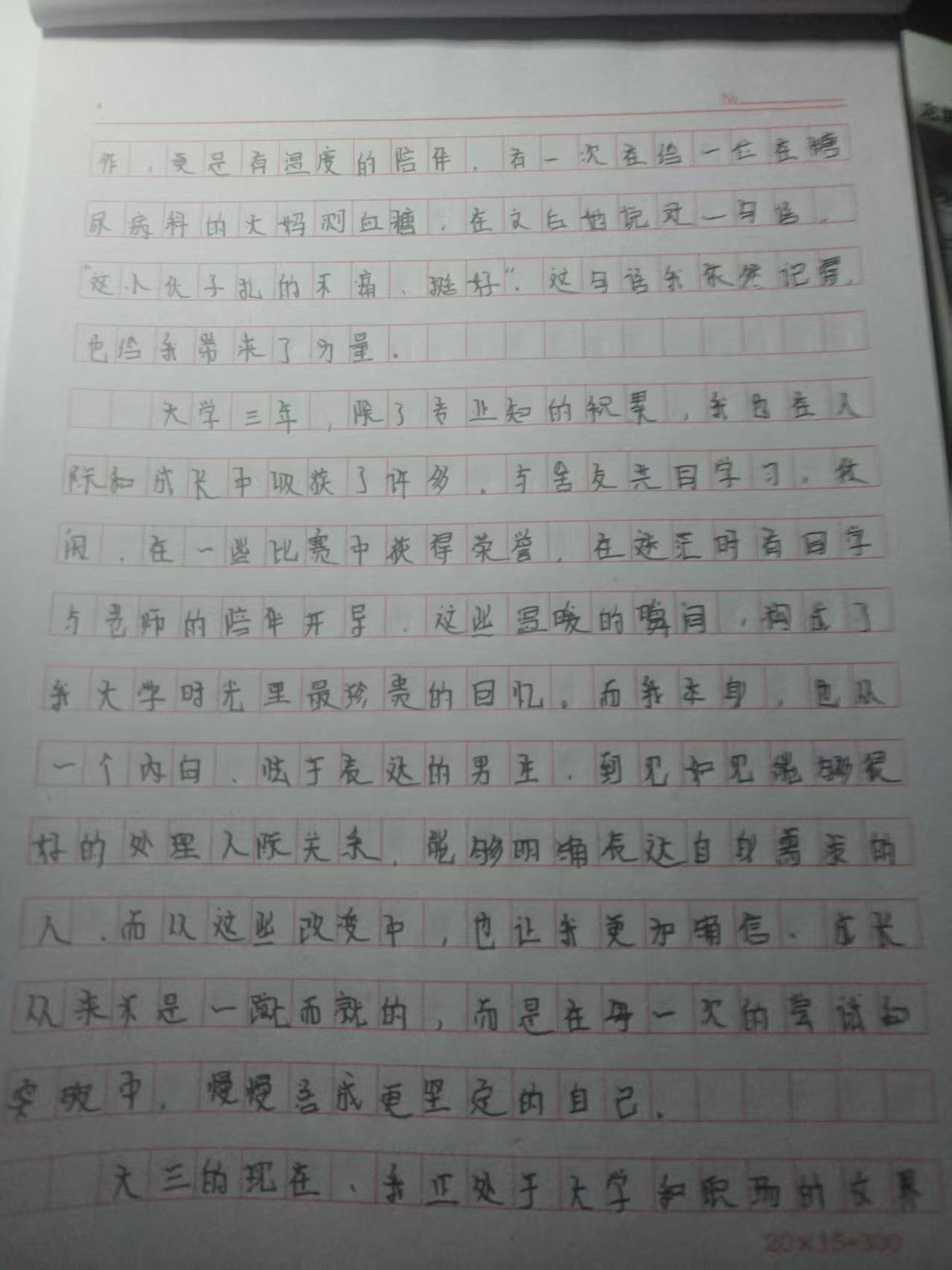 小组成员们凝神伏案,将心里话诉诸笔端。张子为聚焦护理行业发展趋势,写下深耕专业领域、助力基层医疗服务的职业目标;栾子晗细数求学路上的收获与成长,叮嘱未来的自己永葆仁心与担当;黄红燕将对生命的敬畏与对护理事业的热爱融入文字,期许未来能成为兼具温度与专业能力的护理人;高英娜则着重规划了学业进阶之路,立志以扎实学识赋能临床护理实践。一笔一划间,是对当下的清醒认知,更是对未来的郑重承诺。