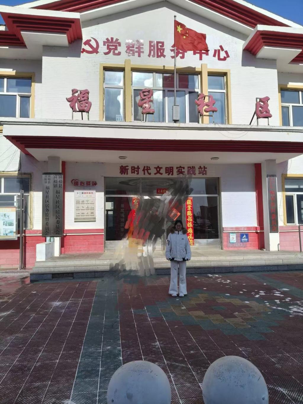 在福星社区党群服务中心,我校学子护理学专业护理学k252班陈雨婷同学积极投身社区志愿服务,以青春力量助力基层治理。她身着轻便冬装,在社区新时代文明实践站的门前留影,身后“党群服务中心”的标识格外醒目。在服务期间,她协助社区工作人员开展政策宣传、信息登记、便民引导等工作,耐心倾听居民诉求,细致解答各类问题,用真诚与担当搭建起社区与居民之间的“连心桥”。从整理社区活动资料到协助开展文明实践活动,她在平凡的岗位上践行着“奉献、友爱、互助、进步”的志愿精神,让青春在服务基层、服务群众的实践中绽放光彩。