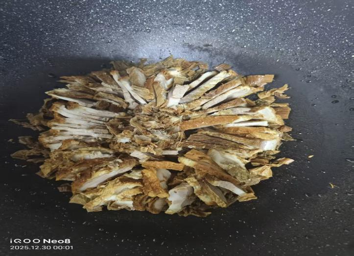 护理学235班李东华带来了笋干炒肉美食制作分享。李东华同学先把炸好的带皮肉切成厚片,整齐码在不粘锅里;接着把笋干或干菜泡软洗净,铺在肉的缝隙和表面;然后淋入生抽、少许老抽和料酒,加一小勺糖提鲜,倒入没过食材一半的热水;盖上锅盖,中小火焖煮15-20分钟,让肉和笋干的味道充分融合,最后开大火收浓汤汁即可。