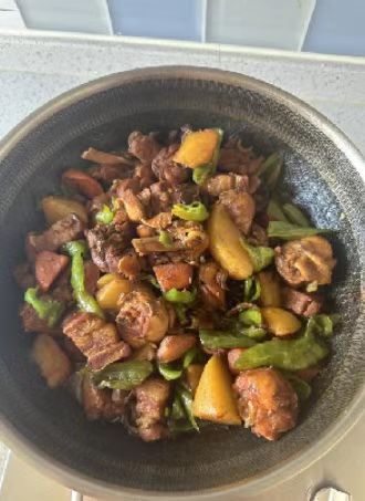 四名同学各司其职、精心制作,一道道美味佳肴陆续呈现。石玲毓同学专注制作经典家常菜可乐鸡翅,从食材清洗、腌制到入锅翻炒、收汁,步骤娴熟,色泽鲜亮、香甜入味的鸡翅很快出锅。史鑫凯同学倾力烹制特色大菜大盘鸡,精心处理鸡肉与配菜,把控火候与调味,肉质鲜嫩、汤汁浓郁的大盘鸡香气四溢,尽显扎实厨艺。吕帅同学制作煮面条,细心把控水温与煮制时间,搭配简单调味,做出清爽劲道的面食,朴实又充满家的味道。张雅鑫同学则用心呈现清淡鲜美的清蒸鱼,从处理鱼身到上锅蒸制、淋汁,操作规范细致,成品肉质滑嫩、营养健康,展现了细腻的烹饪技巧。