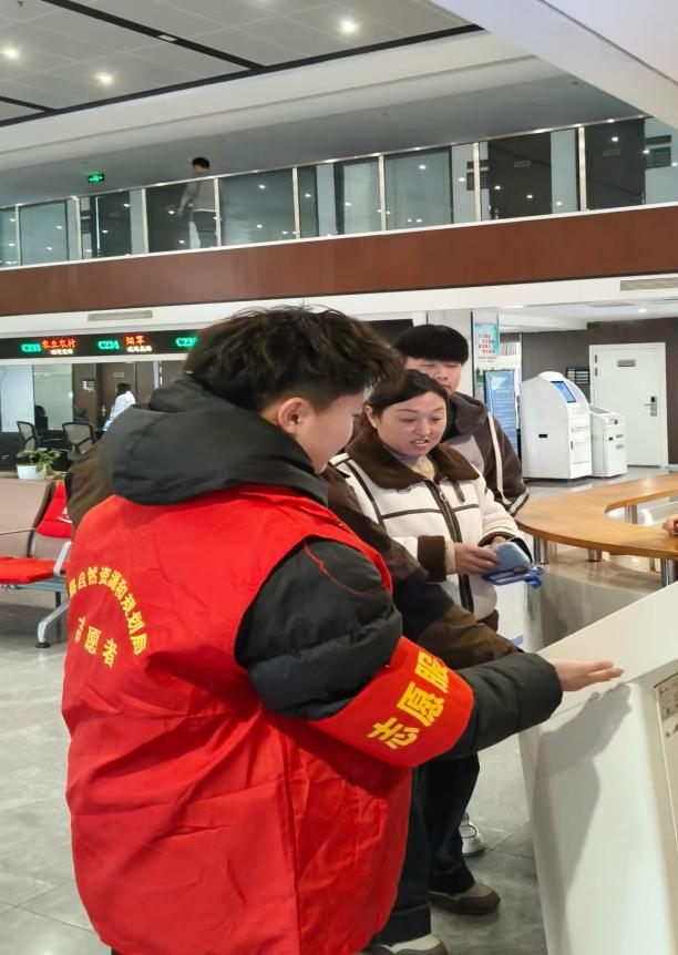 王岳川同学在丰县审证大厅投身便民志愿服务,以饱满热情助力民众高效办事。他主动询问群众需求,耐心引导流程,手把手协助办理市民卡申领、激活、补换业务,细致讲解不动产业务所需材料、步骤及注意事项,及时解疑答惑,减少群众办事耗时与流程困扰,用贴心服务打通便民“最后一公里”,提升群众办事获得感。