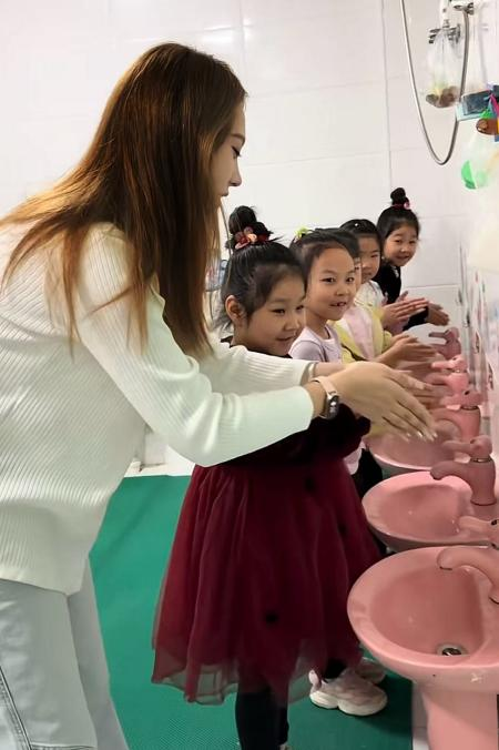 马诗彤同学在社区的带领下,作为志愿者走进辖区幼儿园,开展“健康小手,从洗手开始”志愿服务活动。结合专业知识,用生动有趣的方式向孩子们演示并指导七步洗手法,帮助他们养成良好卫生习惯,在实践中践行医学生的责任与担当。