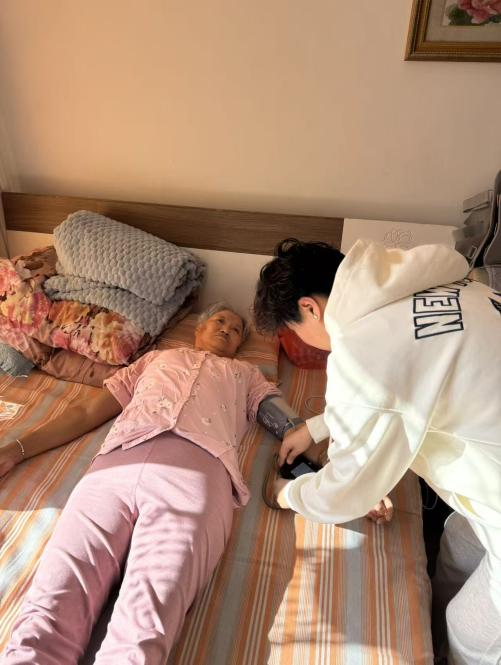 闫思文参与大兴农场社区服务中心上门测量血压志愿服务时,全身心投入其中。她认真协助医护人员,精准操作仪器为居民测量血压,详细记录数据。面对居民的疑问,总是耐心解答,普及健康知识。遇到行动不便的老人,她会小心搀扶,测量后贴心叮嘱注意事项。有位老人因血压偏高而焦虑,闫思文轻声安慰,还分享日常降压小妙招。她深刻体会到,医疗服务不仅是技术活,更要有责任与温度。每一次测量、每一句叮嘱,都让她收获帮助他人的快乐,自身沟通与服务能力也得以提升。