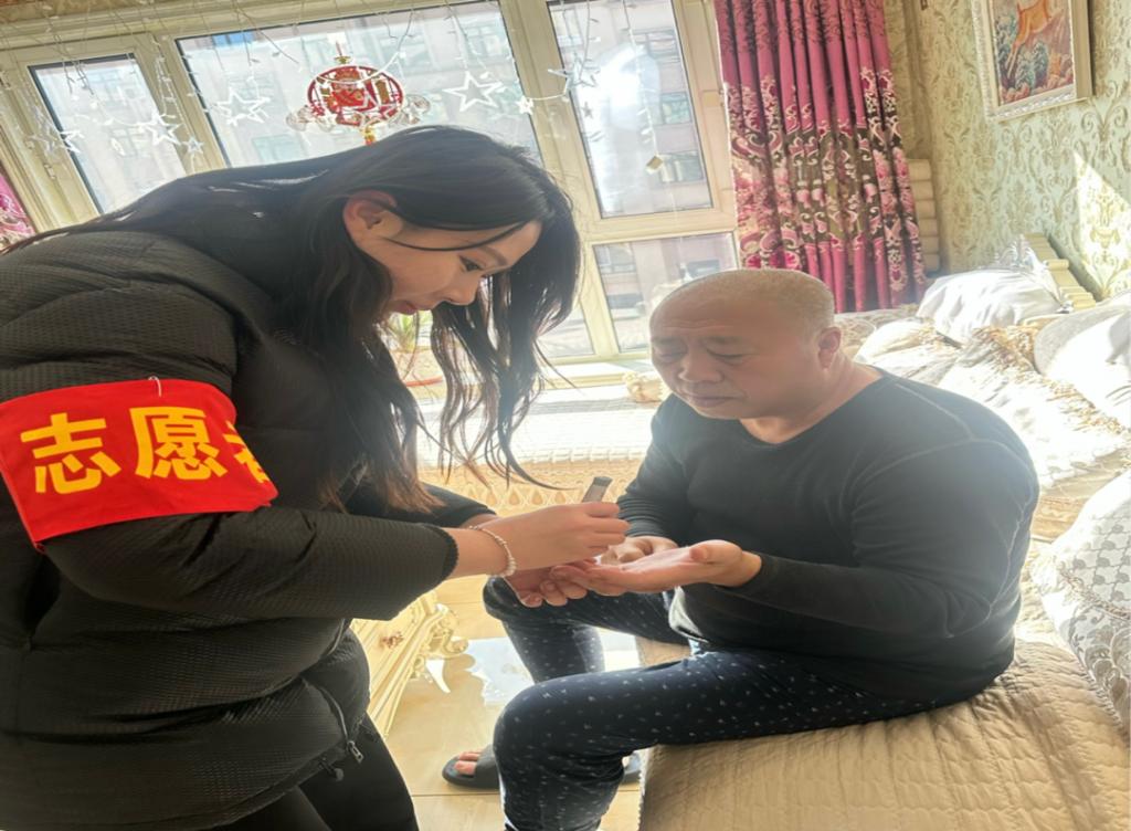 我是齐齐哈尔工程学院护理学专业的杜秋冀,2月9日我参与了巴彦县复生社区的社区敬老志愿服务,上门为独居老人提供血糖监测服务。这段经历让我对“志愿”二字有了更深刻的理解。